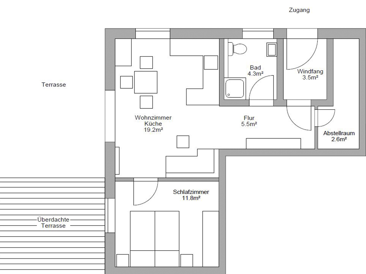 Genießen Sie auf 50m² mit bis zu 3 Personen Ihren Urlaub in der gemütlichen Ferienwohnung.